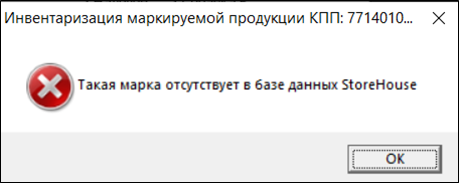 При сканировании марки, отсутствующей в базе r_k StoreHouse Pro на остатках по данному КПП, система выдаст предупреждение.