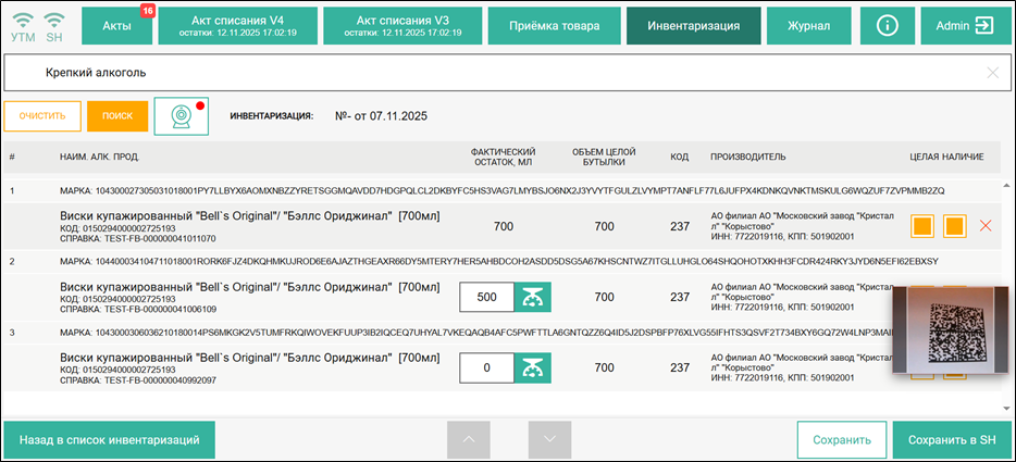Если устройство, на котором запущен браузер со страницей EgaisForPos, оснащено видеокамерой или используется внешняя видеокамера, то отсканировать товар можно с помощью видеокамеры.
