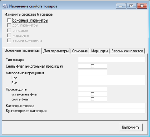 Окно редактирования свойств группы товаров аналогично окну редактирования свойств выделенных товаров.