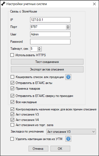 При установленной настройке для маркируемой алкогольной продукции указание марок старого и нового образца обязательно в актах для всех причин списания.