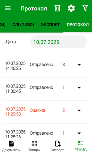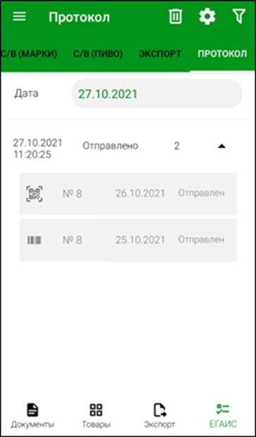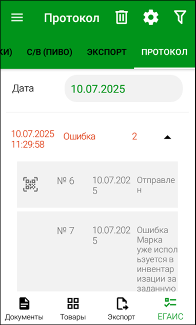 При каждой выгрузке инвентаризаций ЕГАИС в r_k StoreHouse Pro формируется отдельный протокол передачи данных.