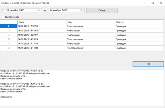 Экспорт актов списания позволяет выгрузить акты списания 1-го регистра в БД r_k SH Pro, если по какой-то причине Акты списания не выгрузились автоматически.