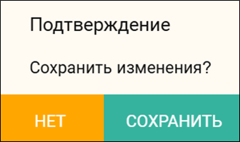 При нажатии на [Назад в список инвентаризаций] выйдет подтверждающее сообщение. Нажмите кнопку [Сохранить] для сохранения внесенных изменений, или на кнопку [Нет] для отказа от сохранения.