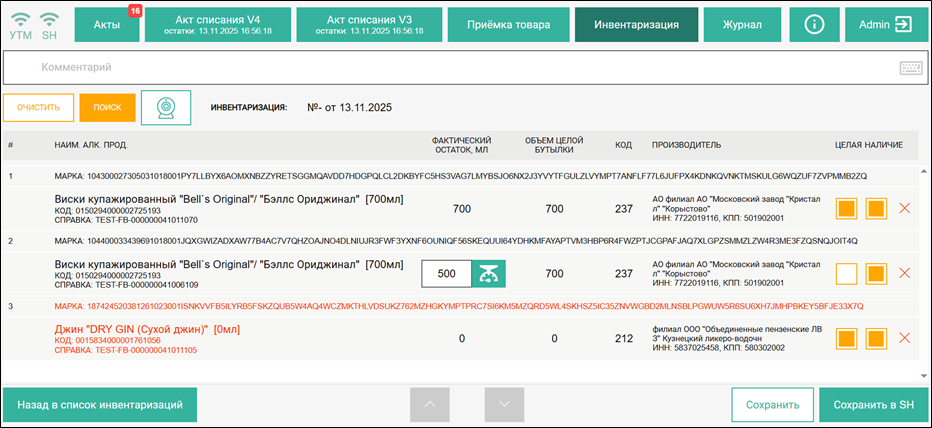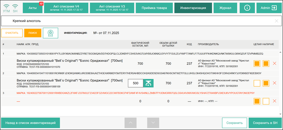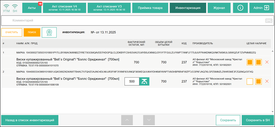 Но марка будет добавлена в список инвентаризации с незаполненной информацией по товару ЕГАИС и справке Б. Рекомендуем отставить в сторону такую бутылку для дальнейшего изучения причин отсутствия марки в базе r_k SH Pro.
