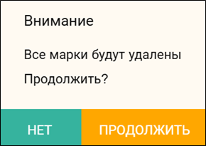 в строке с маркой. При удалении марки выйдет сообщение. Нажмите кнопку [Удалить] для удаления марки, или на кнопку [Нет] для отказа операции удаления.