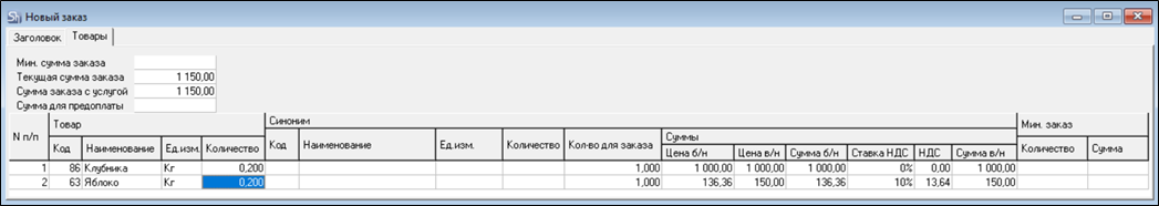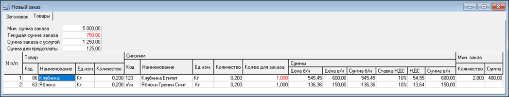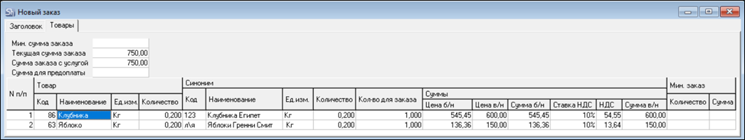 При подстановке синонимов будет рассчитано «Количество для заказа» - округление «Количество» синонима в большую сторону. Заказ поставщику будет отправлен в данном количестве.