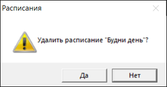 Система запросит подтверждение удаления. Нажмите [Да], если Вы действительно хотите удалить выбранное расписание. Нажмите [Нет], если Вы ошибочно выбрали пункт меню «Удалить расписание».