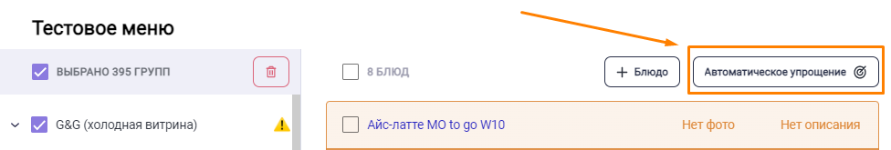 Автоматическое упрощение позволяет быстро адаптировать меню для Delivery Club.