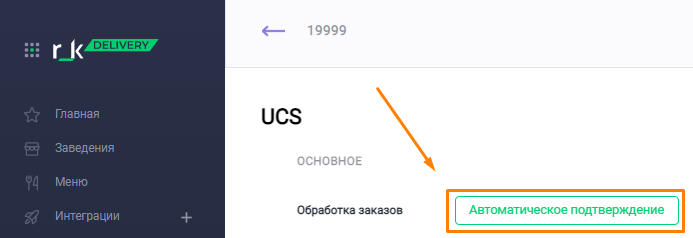 Для работы с заказами вы можете включить или выключить автоматическое подтверждение: