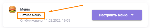 - Введите название нового меню, затем нажмите на кнопку со стрелкой в правой части поля: