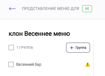 - В режиме создания или редактирования меню выберите группу, которую следует упростить или все группы