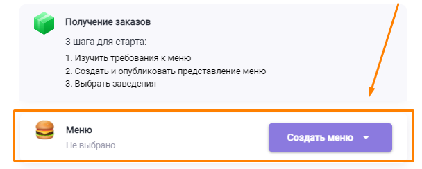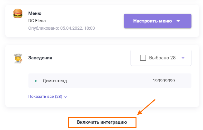Устраните ошибки, чтобы продолжить настройку интеграции.Нажмите кнопку Опубликовать меню для заведений.