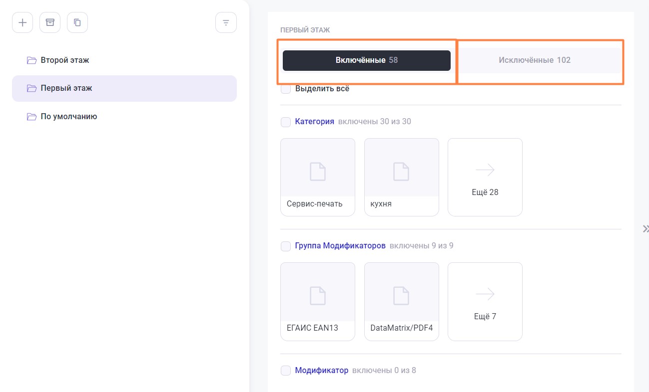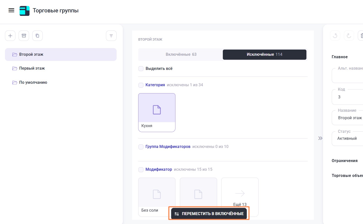 Для Включения торгового объекта, во вкладке Исключеные, выделите необходимой объект и нажать кнопку Переместить в включенные.