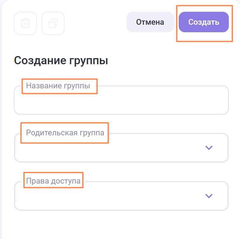 Родительская группа — выберите существующую группу для вложенности (не обязательно для заполнения)
