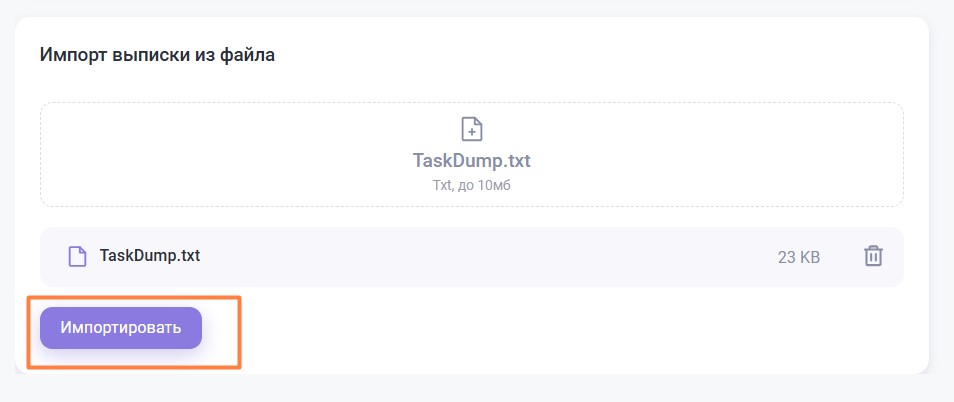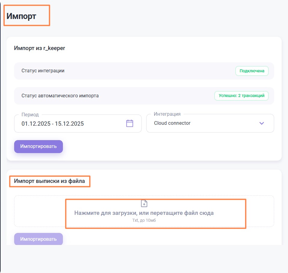 Импорт позволяет загружать транзакции автоматически из внешних систем: