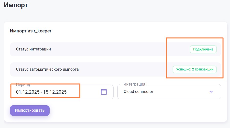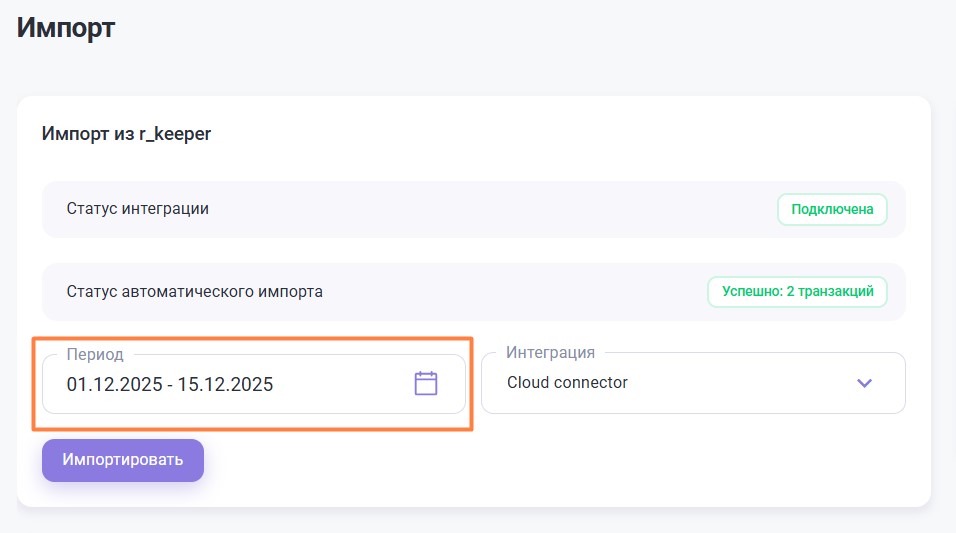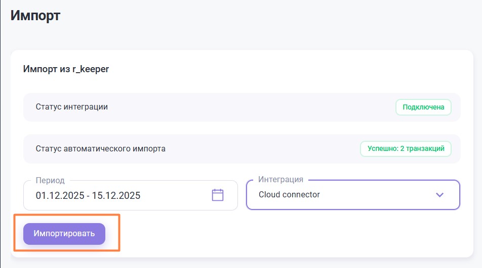 Интеграции с r_keeper настраиваются один раз, затем данные автоматически подгружаются в систему (обычно раз в день, по расписанию).