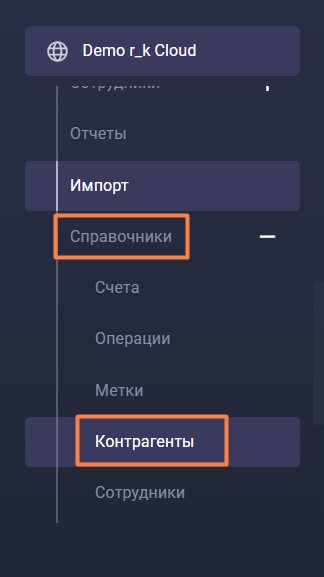 Зайдите в раздел меню Финансовый модуль>Справочники>Контрагенты
