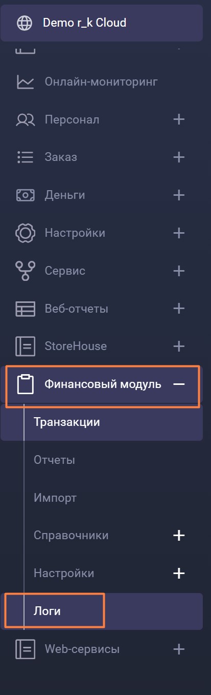 Справочник Логи предназначен для просмотра истории изменений и действий, связанных с транзакциями и другими элементами модуля.