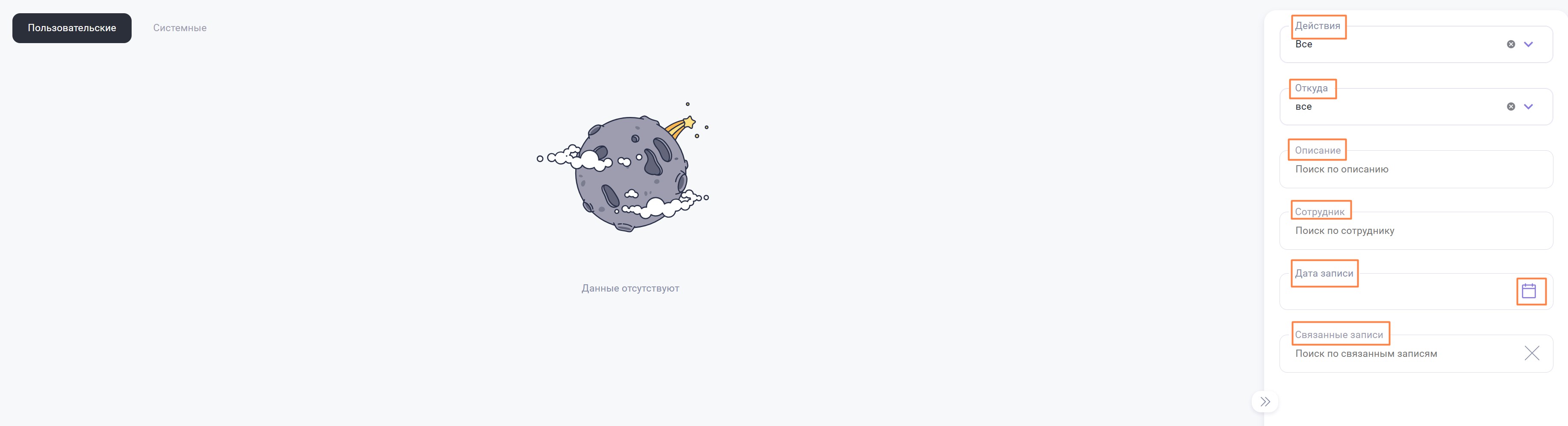 • Связанные записи укажите ссылки на записи, которые были затронуты в ходе выполнения действия.