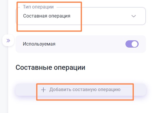 1. В окне создания операции, заполните основные поля, выберите Тип операции>Составная и нажмите кнопку +Добавить составную операцию