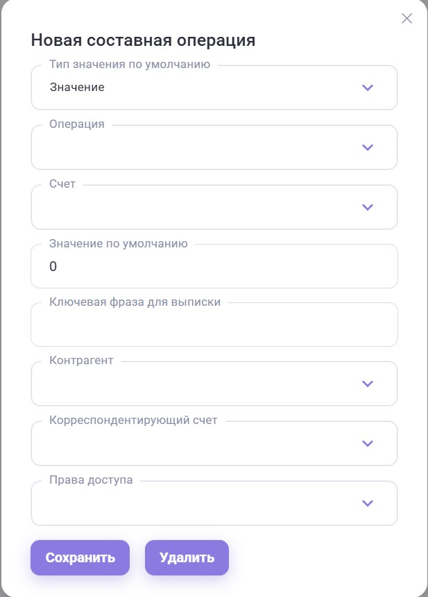 • Значение по умолчаниювведите значение, которое будет автоматически подставляться в поле Сумма в таблице операций. На влияет на загрузку выписки.