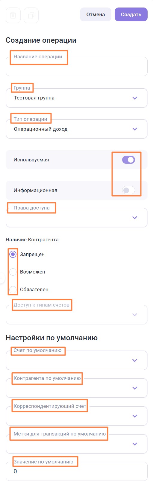 7. Нажмите кнопку Создать в окне редактирования операции.