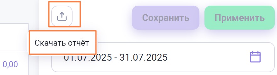 - Для скачивания отчета в формате xlsx, нажмите на кнопку Скачать отчет.