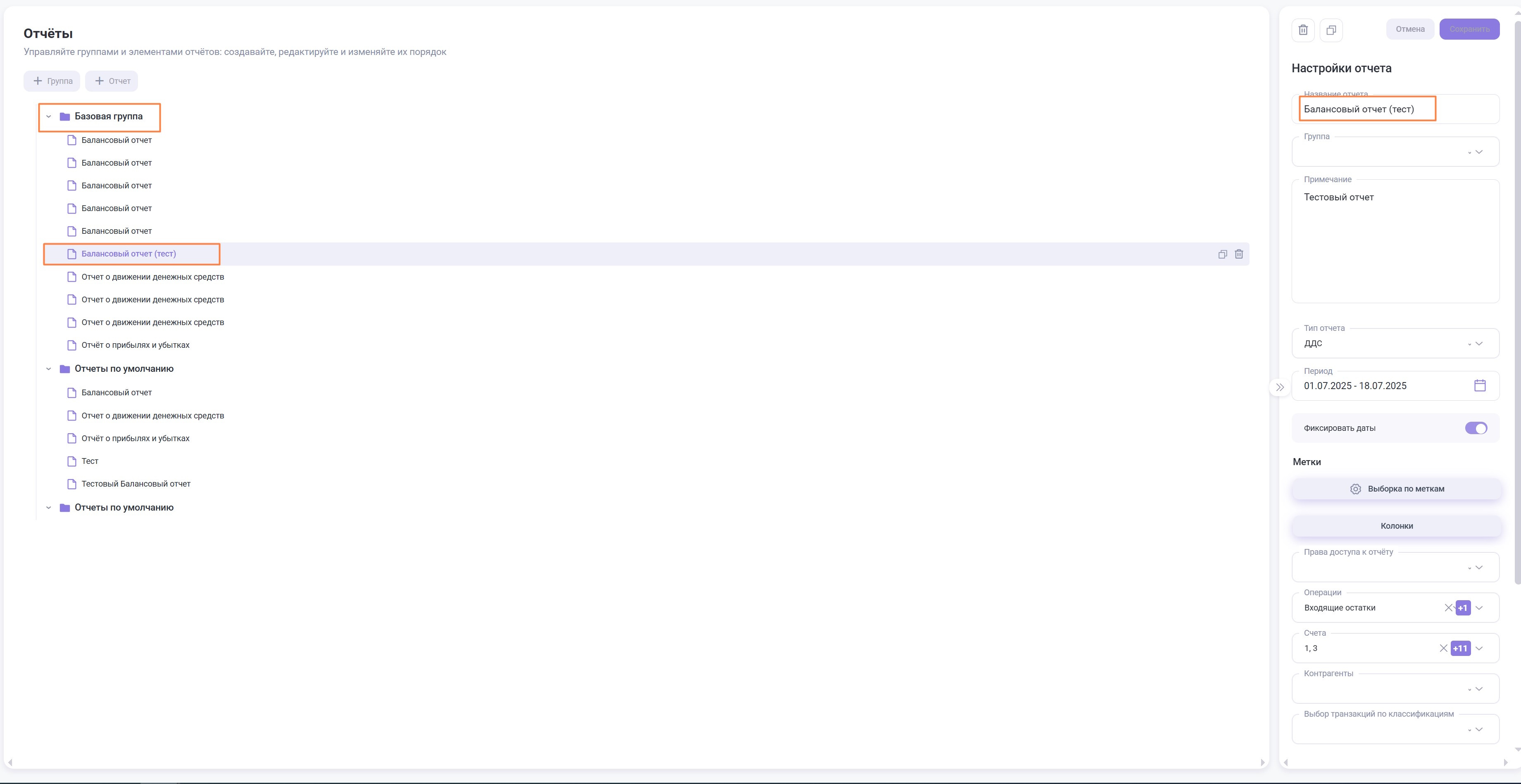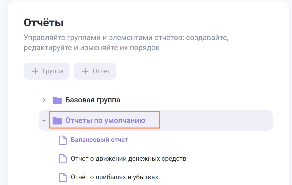 Отчеты предназначена для автоматизированного формирования, анализа и экспорта финансовой отчетности. Доступные типы отчетов: